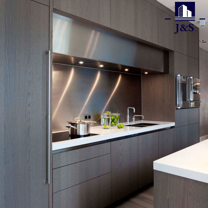 ☞Akrilna kuhinjska vrata uporabljajo čisti postopek namakanja v melamin, čas stiskanja je ena ura, zrcalna površina visoko sijajna ravnost, visoka trdota, brez rumenenja in razpok.