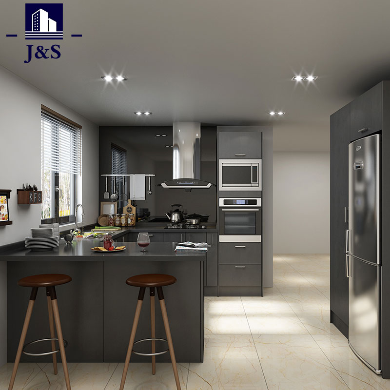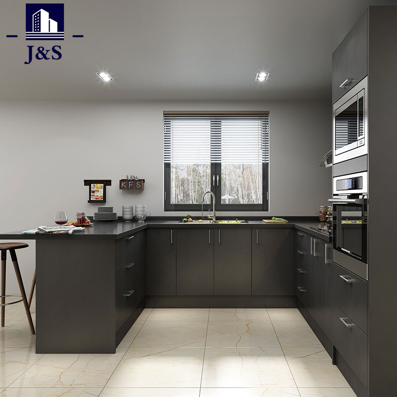 Dobavljamo moderne kuhinjske omarice s črnim lakom. To je zasnova kuhinje brez ročajev s končno obdelavo iz PE in PU laka, ki se odlično obnese pri vodoodpornosti in odpornosti proti praskam.